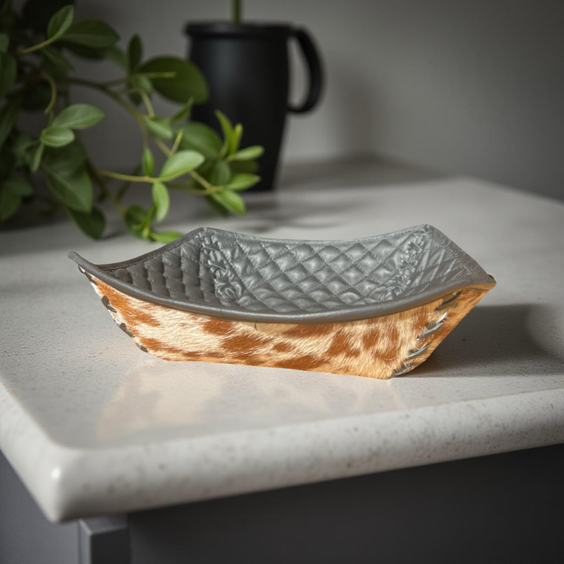 Quilted Leather Cowhide Reversible Catch All Bowl