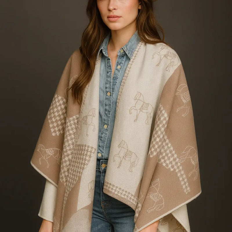 Herringbone Houndstooth Horse Equestrian Knit Winter Scarf