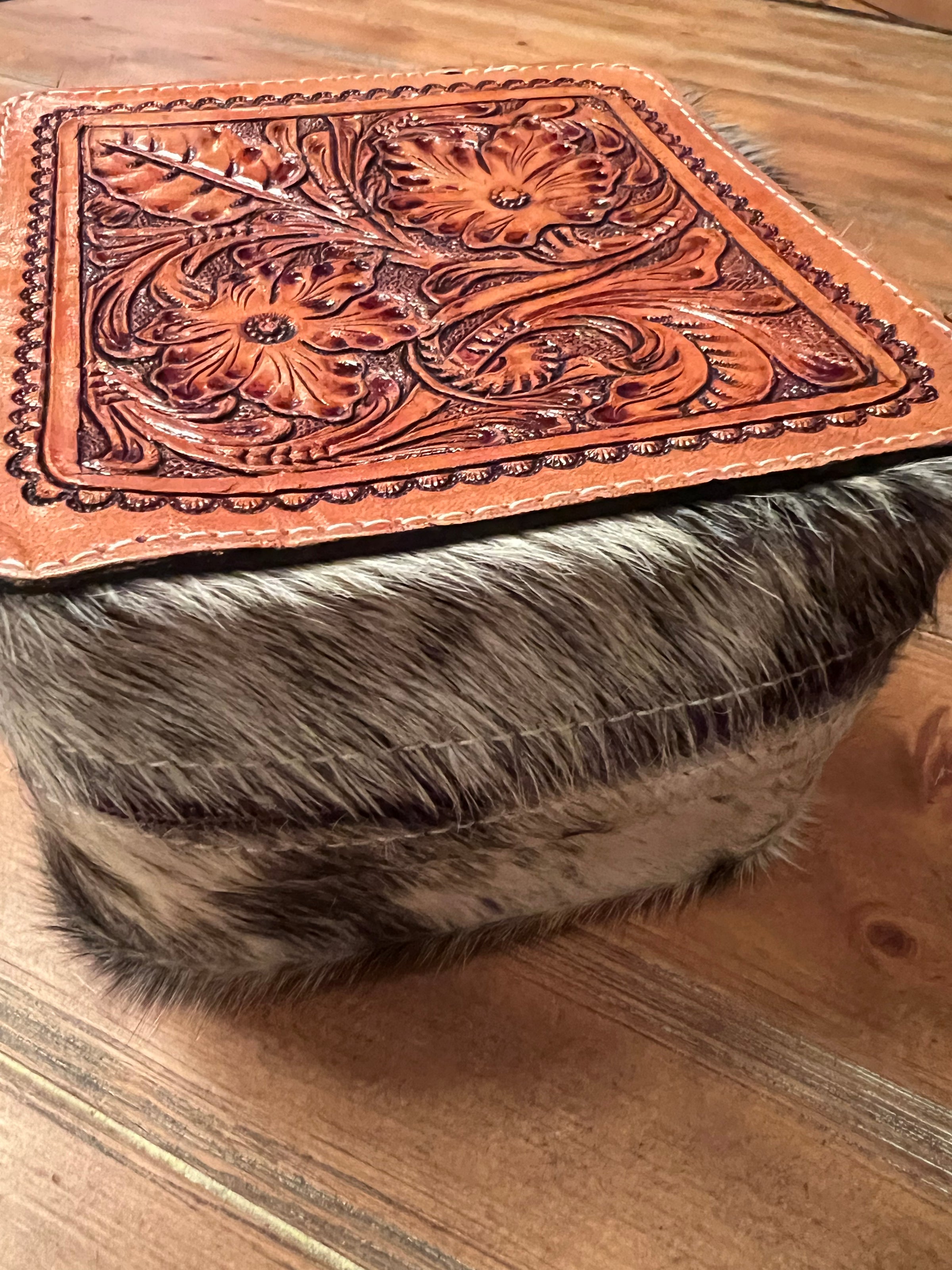 Tooled Leather Cowhide Jewelry Holder - Travel Case